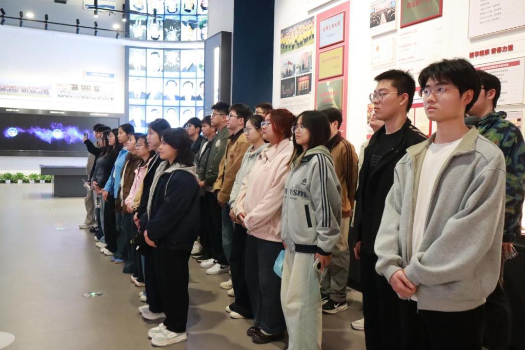 讲解结束,全体人员肃立,向校史中的先辈与英烈默哀1分钟,以庄重仪式表达深切缅怀与崇高敬意。随后,学生代表宣读缅怀誓词,号召全体同学传承先辈遗志,勇担时代使命,将个人成长融入民族复兴的时代洪流。