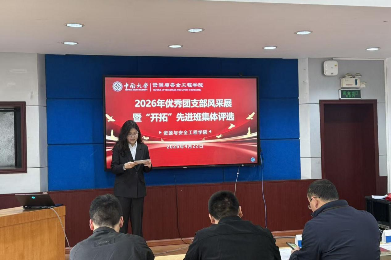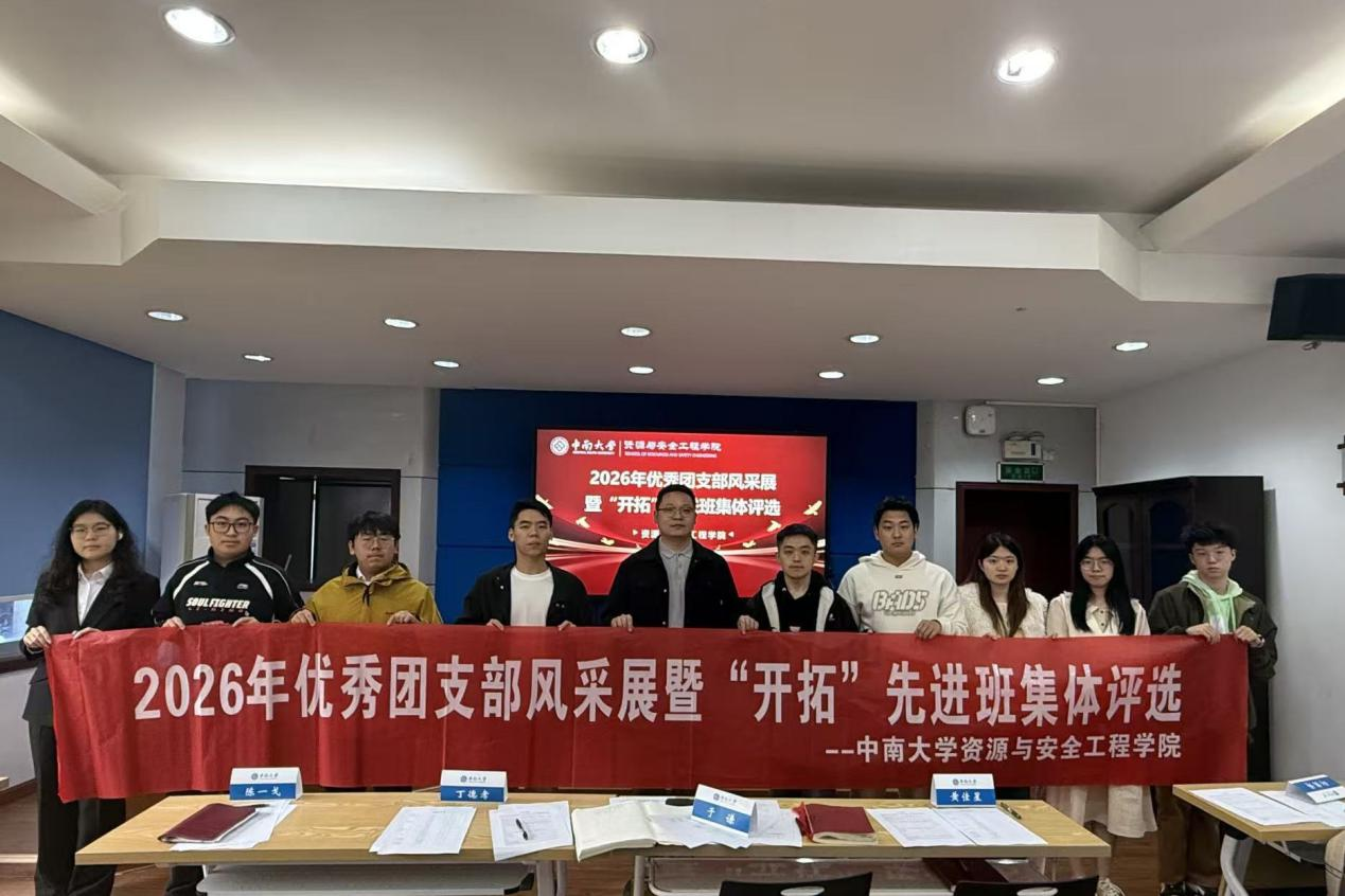 于岳麓山校区采矿楼224顺利开展2026年优秀团支部风采展暨“开拓”先进班集体评选活动。活动邀请了各年级辅导员、班导师代表、团委指导老师、学生代表等担任评委,来自丝袜av