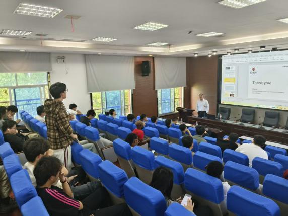 互动交流环节,司博士针对师生提出的充填裂隙识别、岩芯识别、地应力测试等问题进行了详细解答,并分享了国际前沿研究成果。师生们积极提问、深入探讨,现场学术氛围浓厚。